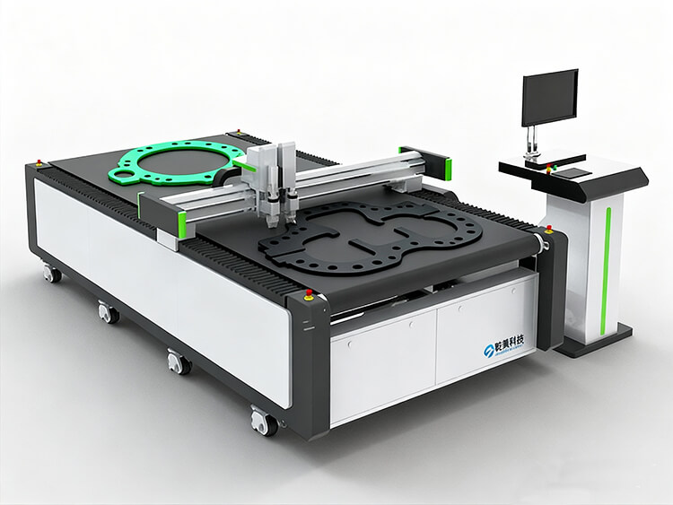 We build CNC digital cutting systems engineered specifically for gasket manufacturing—handling everything from abrasive graphite and slippery PTFE to elastic rubbers and multi-layer PSA stacks. Our platforms support oscillating and drag knives, vision registration, fixed or conveyor tables, and open-architecture software—so you can standardize recipes, maximize yield, and lock in quality.